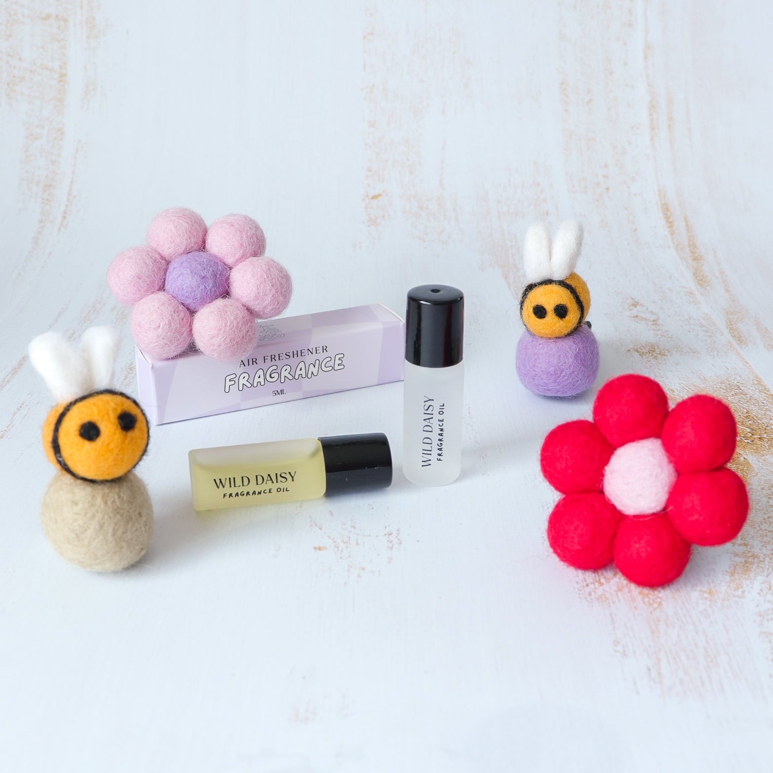 Like any scented product, this one should be used with care. Keep the fragrance bottle in the supplied bag and out of direct sunlight. Keep out of reach of children. Avoid contact with skin, eyes, and all surfaces. Never let the felt air freshener touch any surface of your vehicle. If fragrance comes into contact with any car surface, clean immediately with a damp cloth. Contains fractionate Coconut Oil.